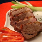 A kacsamell bőréből kiszedegetjük a tolltokokat, a legegyszerűbb csipesszel. A bőrt a húsig, de húst már nem, bevagdossuk mindkét irányból, centis távolságra, a vágások rombusz formát alkossanak. Bedörzsöljük a húst a só, bors, majoránna keverékkel és 20 percet szobahőmérsékleten pihentetjük. Előmelegített, vastag falú serpenyőbe tesszük a melleket, a bőrükkel lefelé és 8-10 perc alatt kisütjük a zsírt a bőr alól, néha mozgassuk meg a húst és figyeljünk, hogy a bőr mindenhol elérje a serpenyő alját. Villával, még véletlenül se szúrjunk bele a sülő húsba, majd megfordítva 2-3 perc alatt süssük meg a húsos oldalt is. Néhány kanál zsiradékot tegyünk tepsibe és a kacsamellet a bőrével felfelé belefektetjük, majd a vékonyra karikázott fokhagymát mellészórjuk. 140 fokra előmelegített sütőbe toljuk és 20 percig sütjük. Tálalás előtt, fóliával letakarva 10 percig pihentessük, majd ferdén vékonyra szeletelve, előmelegített tálra tesszük.