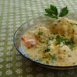 A vékonyan felkarikázott répaféléket a felforrósított olajban kicsit megpirítom, majd meghintem liszttel és ha az is átpirult, felöntöm vízzel, majd beledobom a gondosan megtisztított és rózsáira szedett karfiolt. Kis lángon puhára főzöm. Ne főzzük péppé, mert úgy nem gusztusos. Majd a lé egy részét kimerve, elkeverjük a tejföllel és visszaöntjük a levesbe.