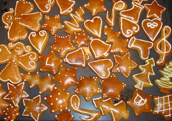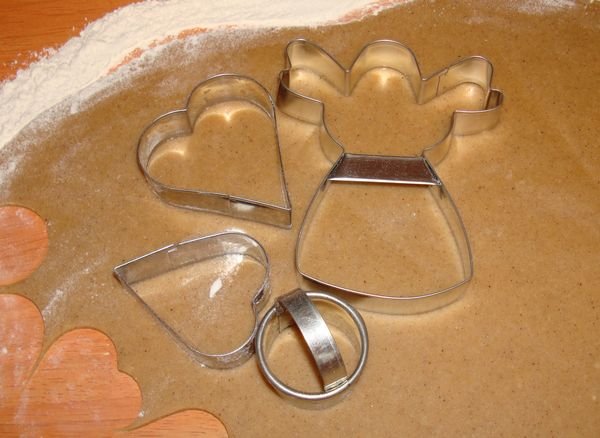 A mézet, cukrot, vajat összemelegítjük, de nem forraljuk. A lisztet, szódabikarbónát, tojásokat kenyérsütőgépbe tesszük és hozzáadjuk a mézes keveréket. A gép nagyon szép, sima tésztát dagaszt belőle. Ha kész, lisztezett deszkán gyúrjuk át (egy kevés lisztet még felvesz, de ne adjunk hozzá sokat, mert nagyon kemény lesz és nem lehet szépre nyújtani), csomagoljuk fóliába vagy egy zacskóba a tésztát. Hagyjuk hideg helyen pihenni, legalább egy éjszakát, de én egy hétig nem értem rá kisütni és semmi baja nem lett. Ha valaki úgy gondolja, hogy ez nagyon sok tészta nyugodtan tegye felét fagyasztóba jövőre.