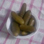 Az fürtös uborkákat egy éjszakán át áztatom. Másnap folyó víz alatt lekefélem és szorosan belerakom az üvegekbe. 5 liter vizet a 10 %-os ecettel és a sóval felforralok, majd ha kihűlt az uborkára öntöm és az üvegeket lezárom. Egy hét múlva már fogyasztható. |