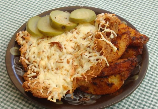 A középvastag szeletekre vágott húst gyengéden kiverjük, majd sóval, borssal meghintve a szokásos módon lisztbe, tojásba és zsemlemorzsába forgatva, bő olajban megsütjük. A felesleges olajat lecsepegtetve, sütőpapírral bélelt tepsibe rakjuk a szeleteket. A tetejét bőven megszórjuk a reszelt sajttal. Grill alatt vagy forró sütőben addig sütjük, amíg a sajt enyhén megpirul. Sült burgonyával és savanyúsággal tálaljuk.