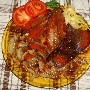 A római tálat a tetejével együtt legalább 20 percre vízbe áztatjuk. A csirkét feldaraboljuk, a római tálba tesszük, aláöntjük a bort. A fagyott zöldségekre rászórjuk a fűszereket és ráöntjük az olajat, majd jó alaposan ... tovább