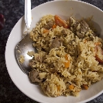 Ideális recept a maradék húsleves felhasználására. A rizst az olajon fehéredésig pirítjuk, majd felöntjük a kétszeres térfogatának megfelelő húslevessel. Felforraljuk, majd kis lángon tíz percig főzzük, végül a lángot eloltva, konyharuhába burkolt fedő alatt, hagyjuk puhára párolódni. A húslevesben főtt zöldséget és a húst kockára vágjuk, majd kevés húslevesben átmelegítjük. A levét leöntve a rizshez keverjük.